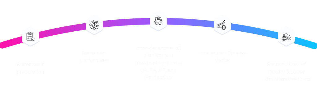 The value of RegTech moves beyond “easier compliance” and directly impacts your financial health and time-to-market. Leading manufacturers in the medical device and pharmaceutical industries have reported the following verifiable benefits after adopting a robust eQMS: